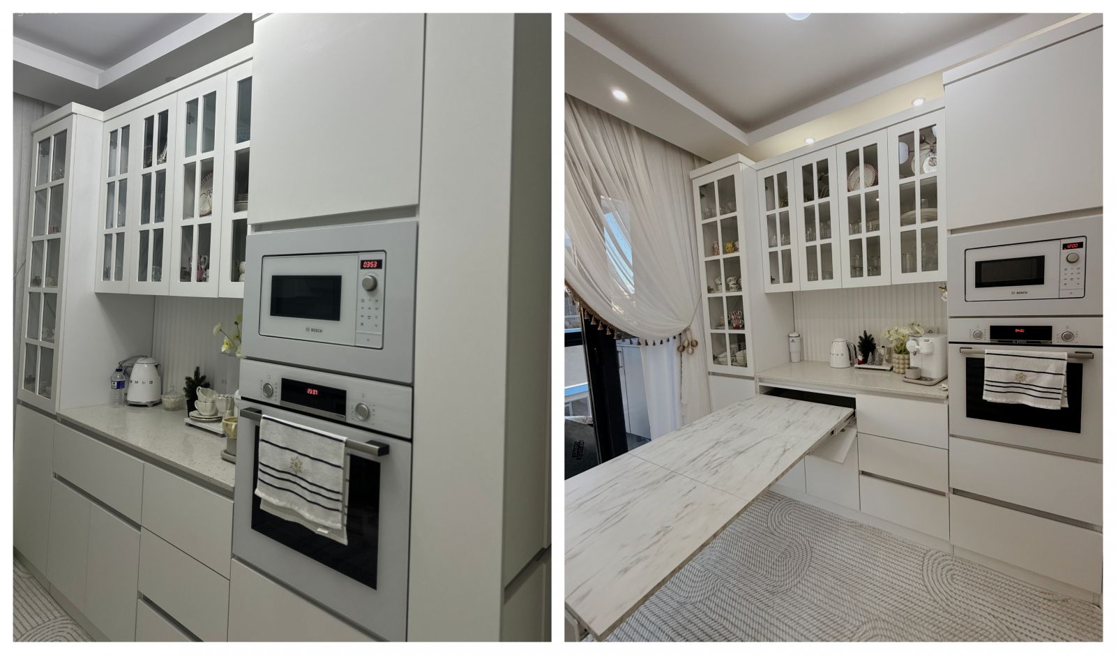 Bu bölümü özellikle isteyen ev sahibimiz, mutfağı çok büyük olmadığı için masaya ekstra yer ayırmaya yanaşmamış.