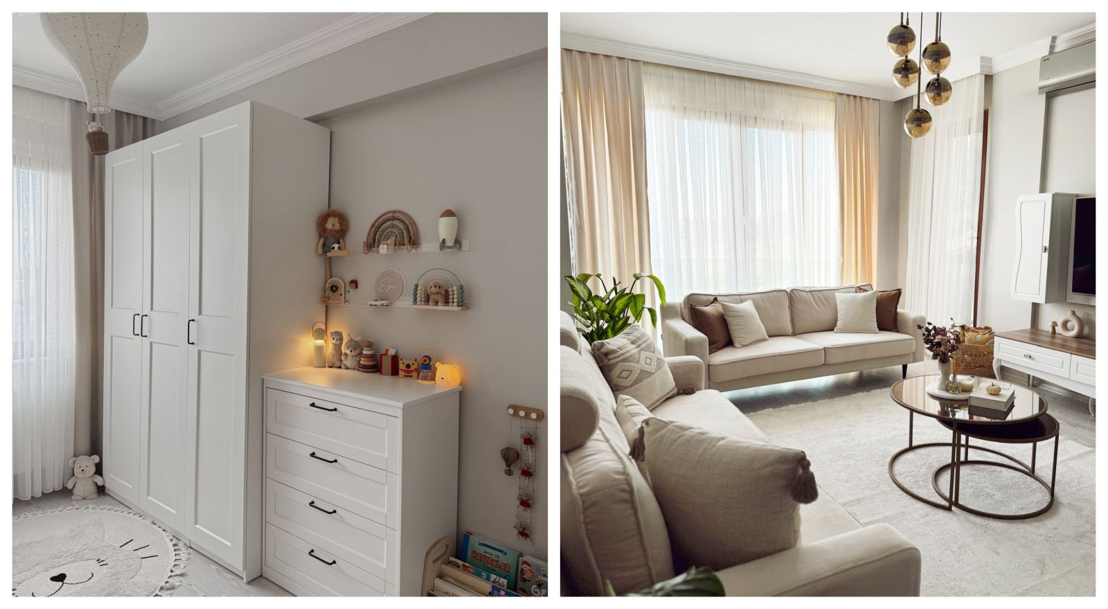 Çocuk odasında da ferahlığı devam ettiren Sude Hanım, burada beyaza eğlenceli objeleri eklemiş.