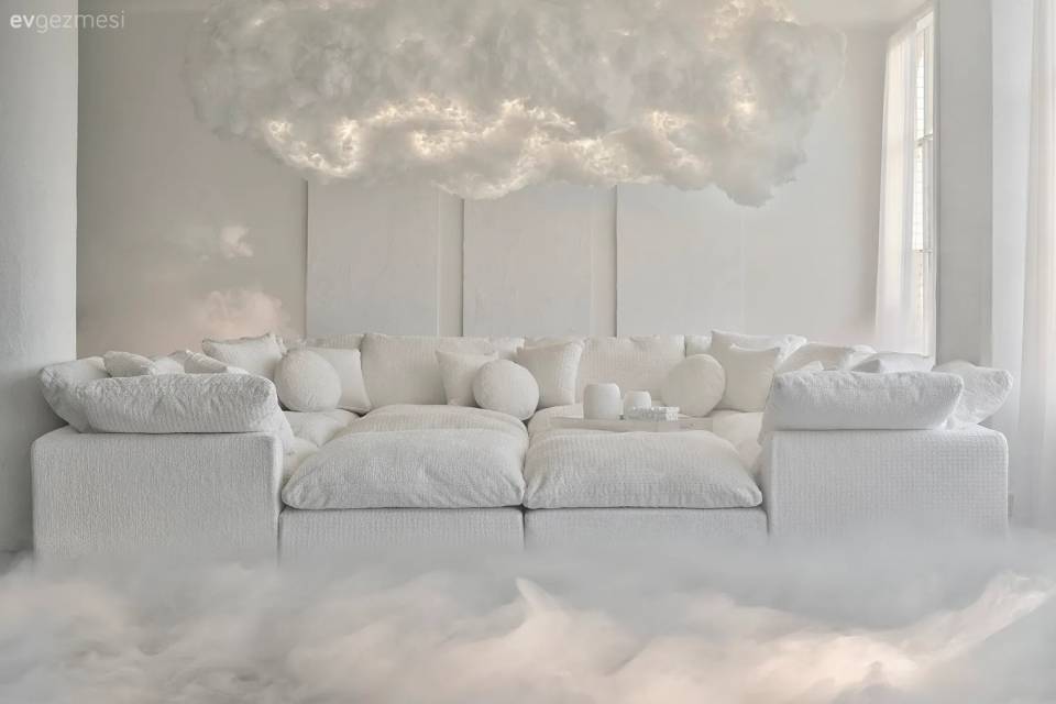 Dekorasyonda ferahlık en çok istenenler arasındaymış. Bu yüzden evin genelinde beyaz ve diğer açık tonlar baskın olmuş.