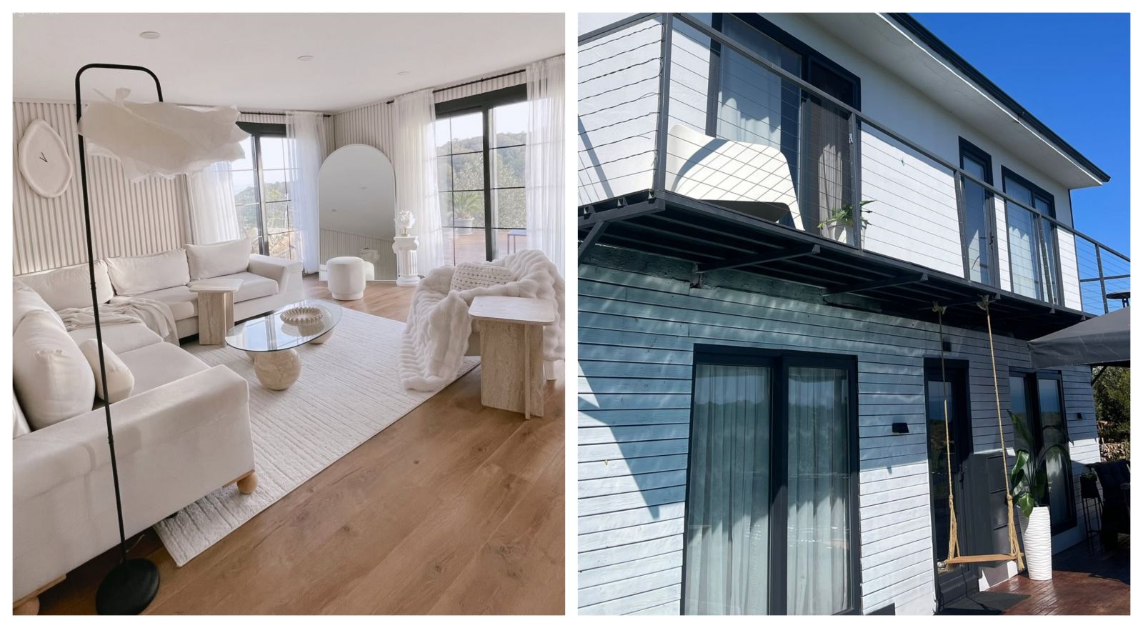 Siyah doğramaları olan beyaz prefabrik ev ona hayallerindeki dekorasyon için gereken alanı vermiş.