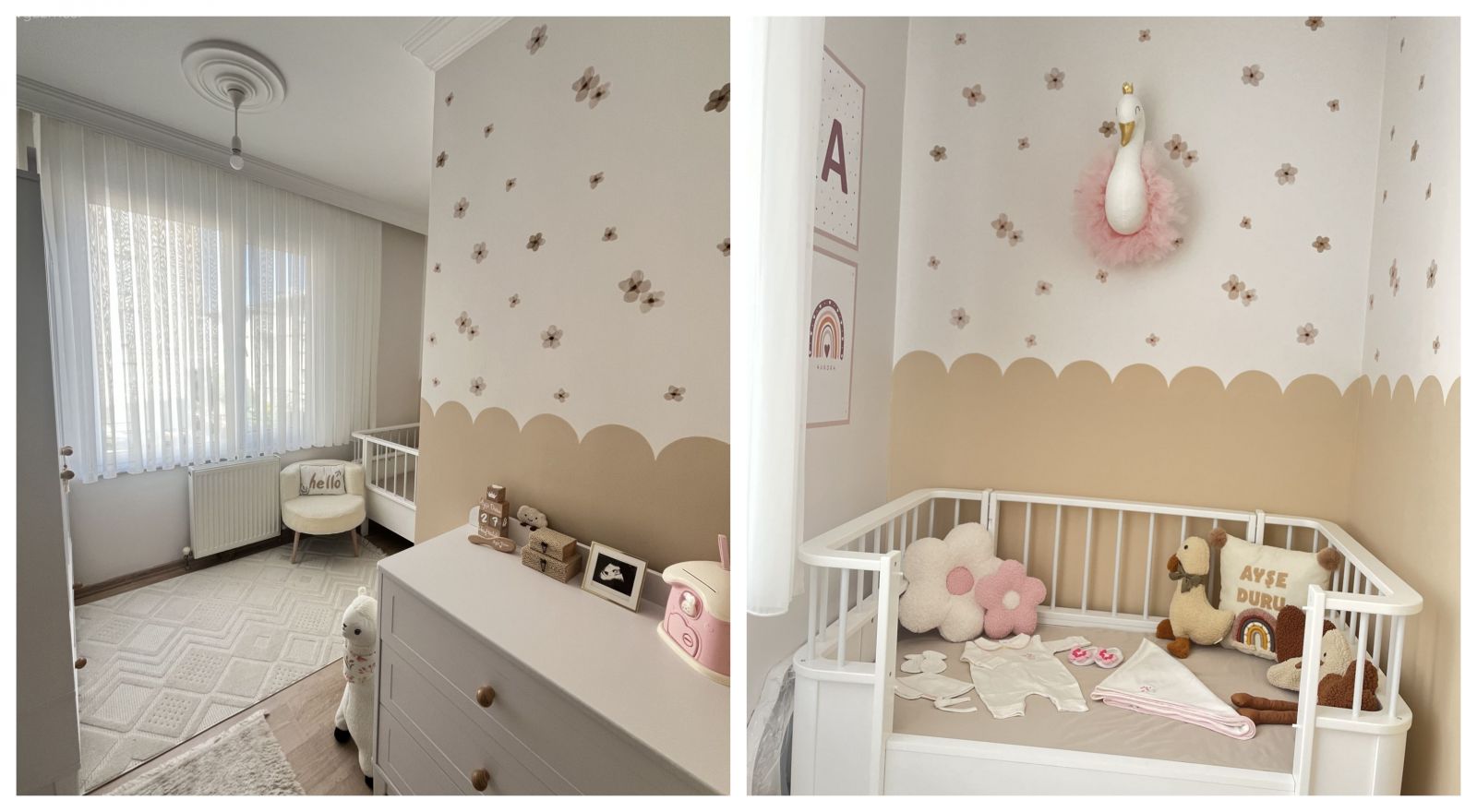 Hatice Hanım ve eşi, bebekleri için eksiksiz bir oda hazırlamak istemiş. Bu sebeple baştan sona her şeyi yapmışlar.
