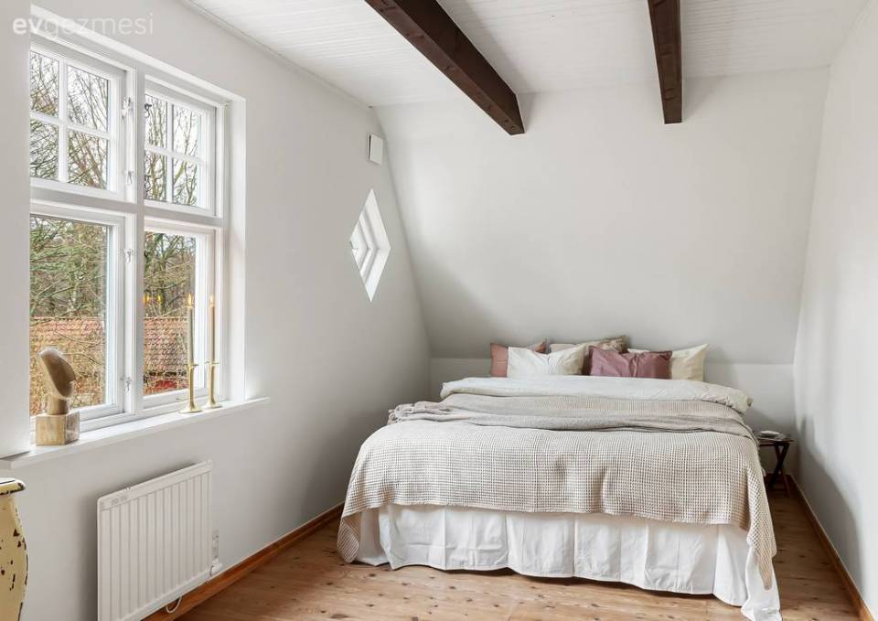 Sade mobilyalar seçen ev sahibimiz, renk olarak beyazı seçmiş. Böylece her yaşa uyum sağlamak kolay olmuş.