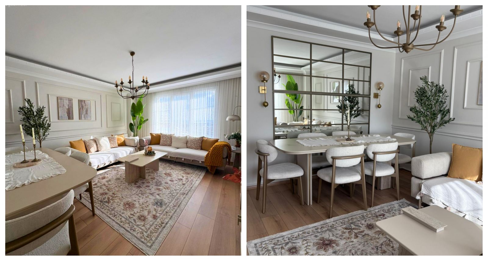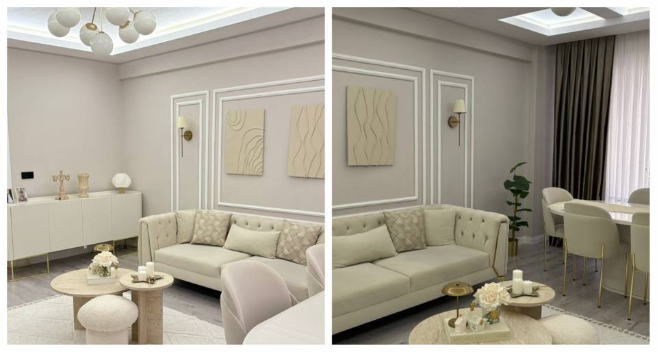 Salona mimari etkiler katmak isteyen Sevim Hanım çıtaların gücüne başvurmuş. Çıta içine gelen tablolar ve samimiyeti arttıran halı ile birlikte her şey tamamlanmış.