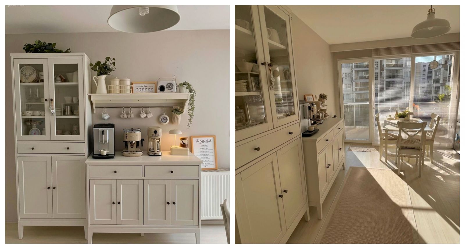Bunun üzerine iki ayrı parçadan oluşan dolaplar gelmiş: Bir dolap dikey olmuş, kahve köşesi ise yatay!