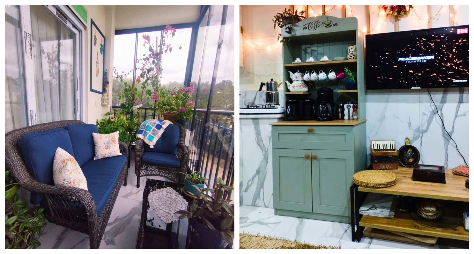Farklı köşelerde yerini alan çiçekler ve duvar dekorasyonları bu noktada üstüne düşeni yapmış.