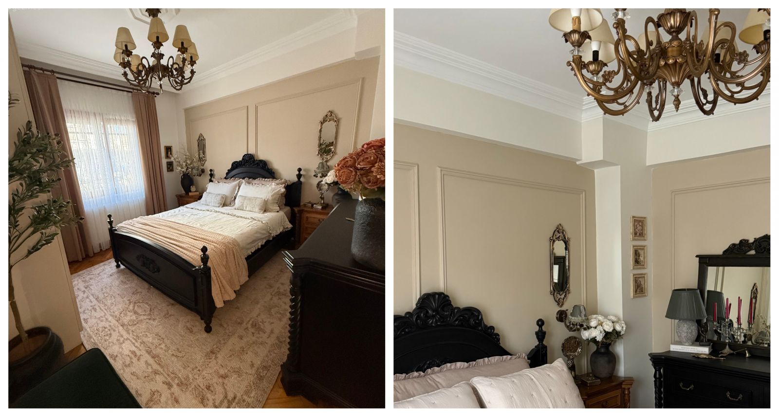 Odasını geçmişten bugüne fırlamış gibi gösteren değişimin ilk aşamasında duvarlar yer almış: Önce çıtalanmış, sonra soft bej tonuna boyanmış.