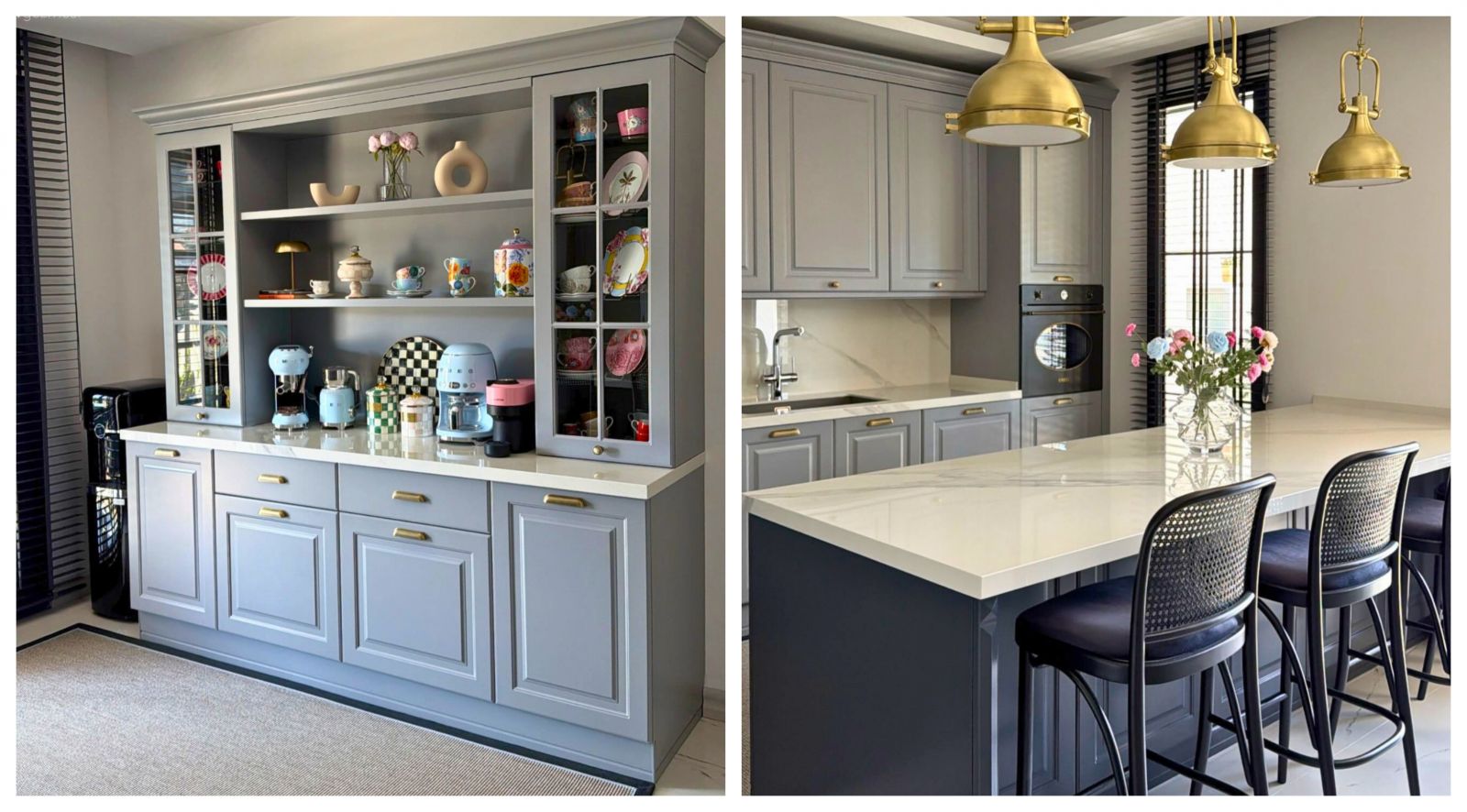 Mutfak, Modern, Gri, Beyaz, Siyah, Altın, Shaker kapaklı dolaplar, Porselen tezgah, Ada mutfak, Mutfak sandalyesi, Sarkıt, Aydınlatma, Mutfak Avize Modelleri, Mutfak aksesuarları, Eviye , Ankastre, Jaluzi
