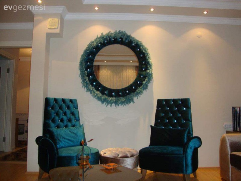 Melek hanım salonundaki bu çıktıyı saklamak yerine, duvar kağıdıyla ön plana çıkarmayı seçmiş..