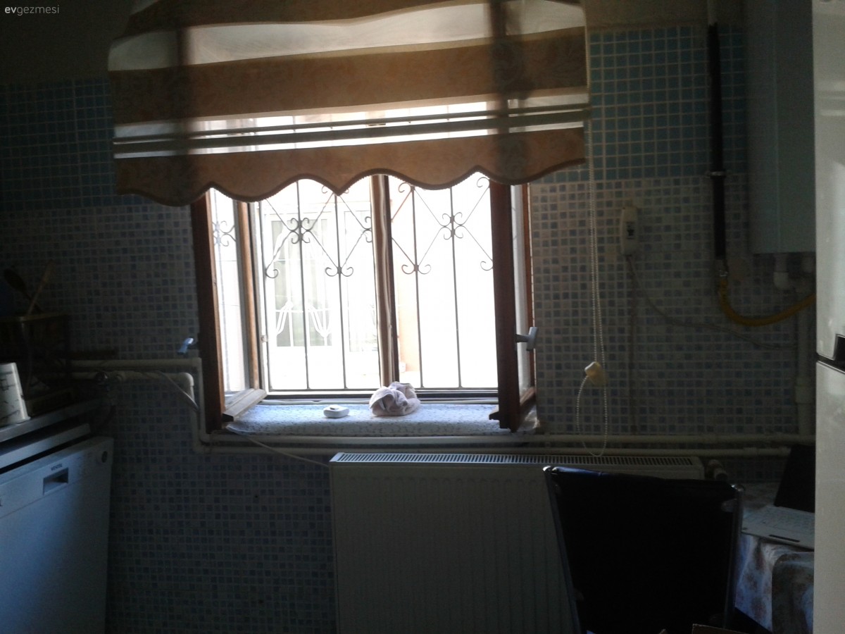 mutfağım çok aydınlık olmasına rağmen karanlık gösteren bir stor perde vardı..