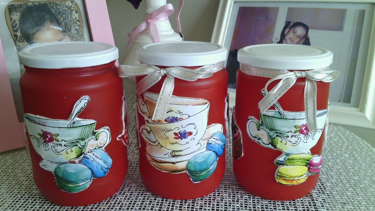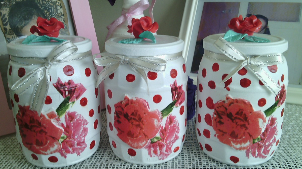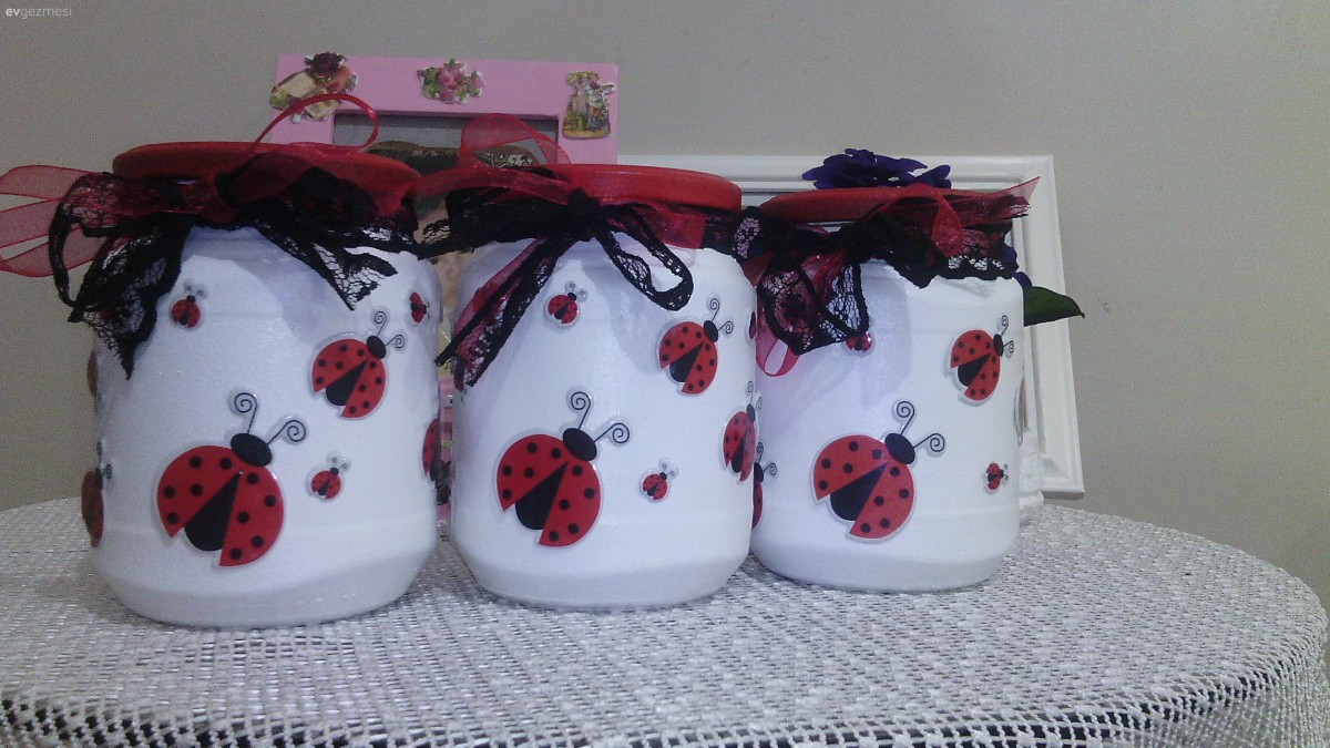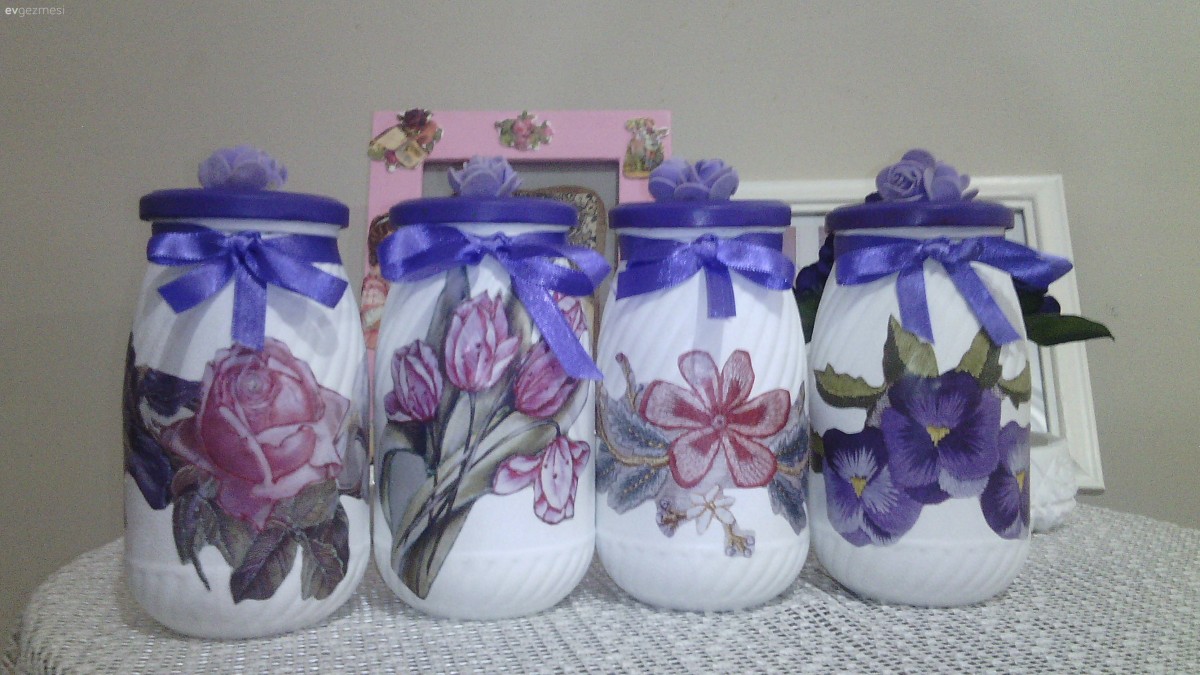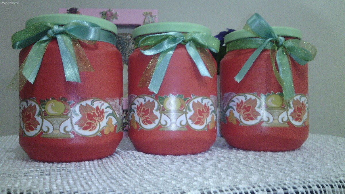 Seda Bozkurt Erdem hanim cok tesekkurler, desenler dekupaj kagidiyla hamur kabartma teknigiyle cam boyasiyla yaptim.Bunlar satiliktir isterseniz faceden mesaj gonderin fiat konusunda yardimci olurum.<br /> Feriha hanim enamel cam boyasiyla pecete dekupaji ve hamur kabartma teknigiyle yaptim kirmizi puantiyeleri de pon pon fircanin tersiyle uyguladim, begendiginize cok sevindim.<br /> Emine hanim, cam boyasiyla yuzeyleri tamamen boyadim,sonra begendigim dekupaj desenini dekupaj tutkaliyla yapistirdim bazilarini da dekupaj hamuruyla boyutlandirip oyle yapistirdim.Kuruyunca sprey vernikle vernikledim.İns yardimci olabilmisimdir.İsterseniz siparis uzerine de yapiyorum.Eger istediginiz varsa face mesajda ulasirsaniz yardimci olurum.