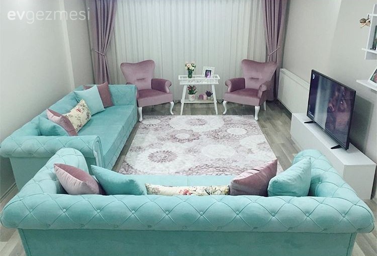 Nihayet sıkış tepiş olmayan, mobilyaların yerleşim düzeni mükemmel olan cidden çok çok şık bir oturma odası. Güle güle oturmak nasip olsun