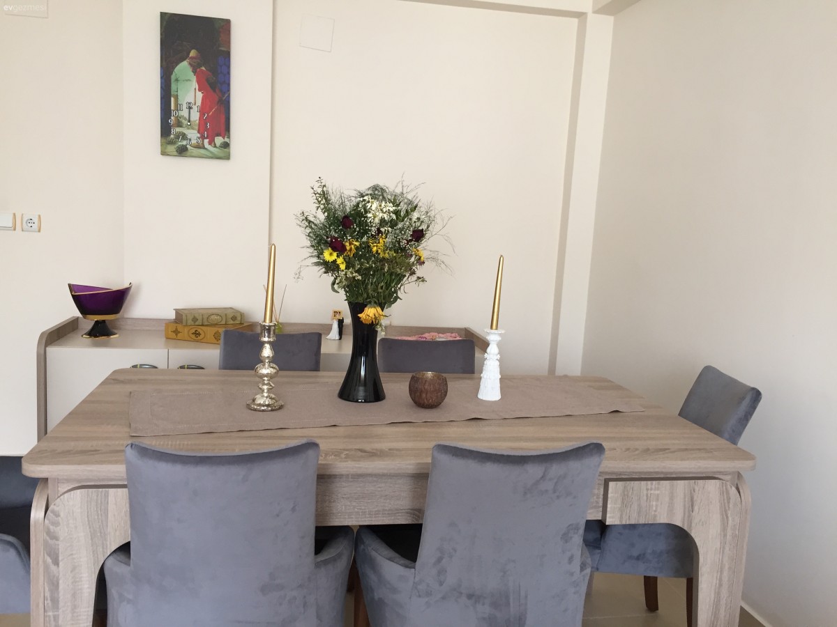 Koltuk üzerindeki tablo biraz yukarıda kalmış bence. Yemek bölümünde de konsolun üzerine daha büyük bir tablo veya modern bir ayna hoş durur diye düşünüyorum. Güle güle oturun.