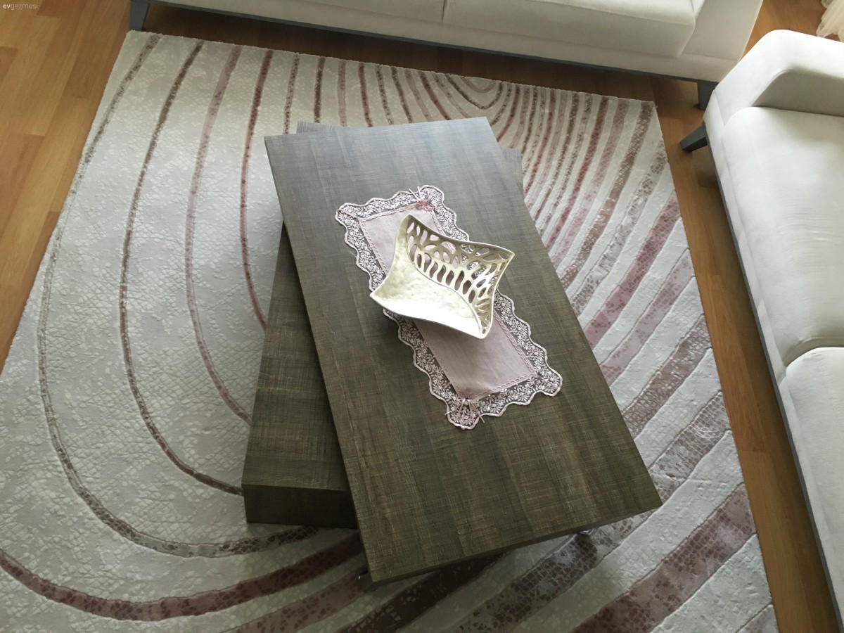 Eşyalarınız çok güzel tv sehpasini bir süre kullanmayin hem degisiklik olur oda da çok fazla eşya var masanın arkasındaki konsolu tv sehpasinin yerine koyup üzerine tv yi asarsaniz hem masa konsolun yerine doğru kayar alan açılır berjerler pencere onune koltukta berjerin yerine geçmeli tablo yerine düğün fotograflarinizdan pastel tonlarda Kanvas tablo yaptirabilirsiniz avize de sarkit şeklinde olmayan başka bir avizeyle degistirilmeli