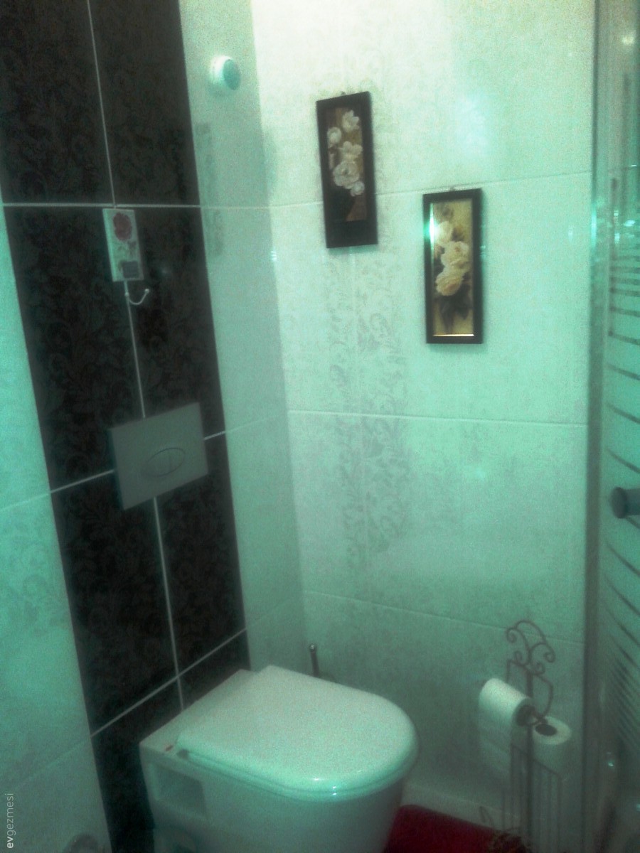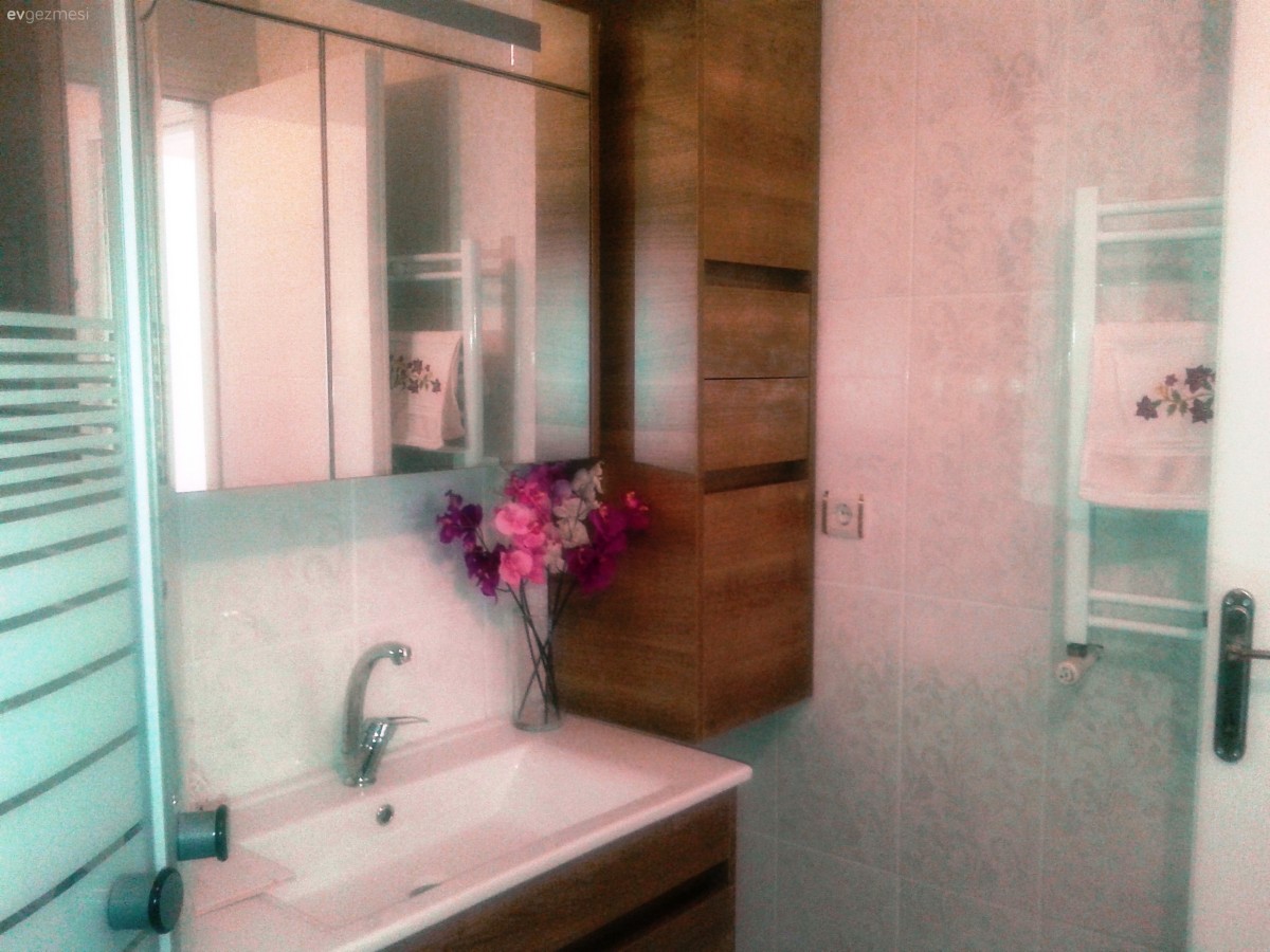 Biz evi aldığımızda banyo dolabı yoktu.Banyoya çok yakıştığını düşündüğüm bu ahşap renkli bu dolabı Carrefour dan aldım.