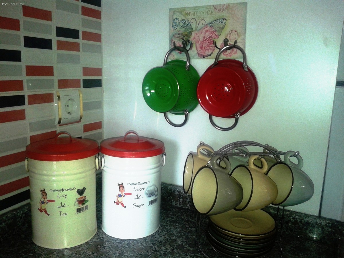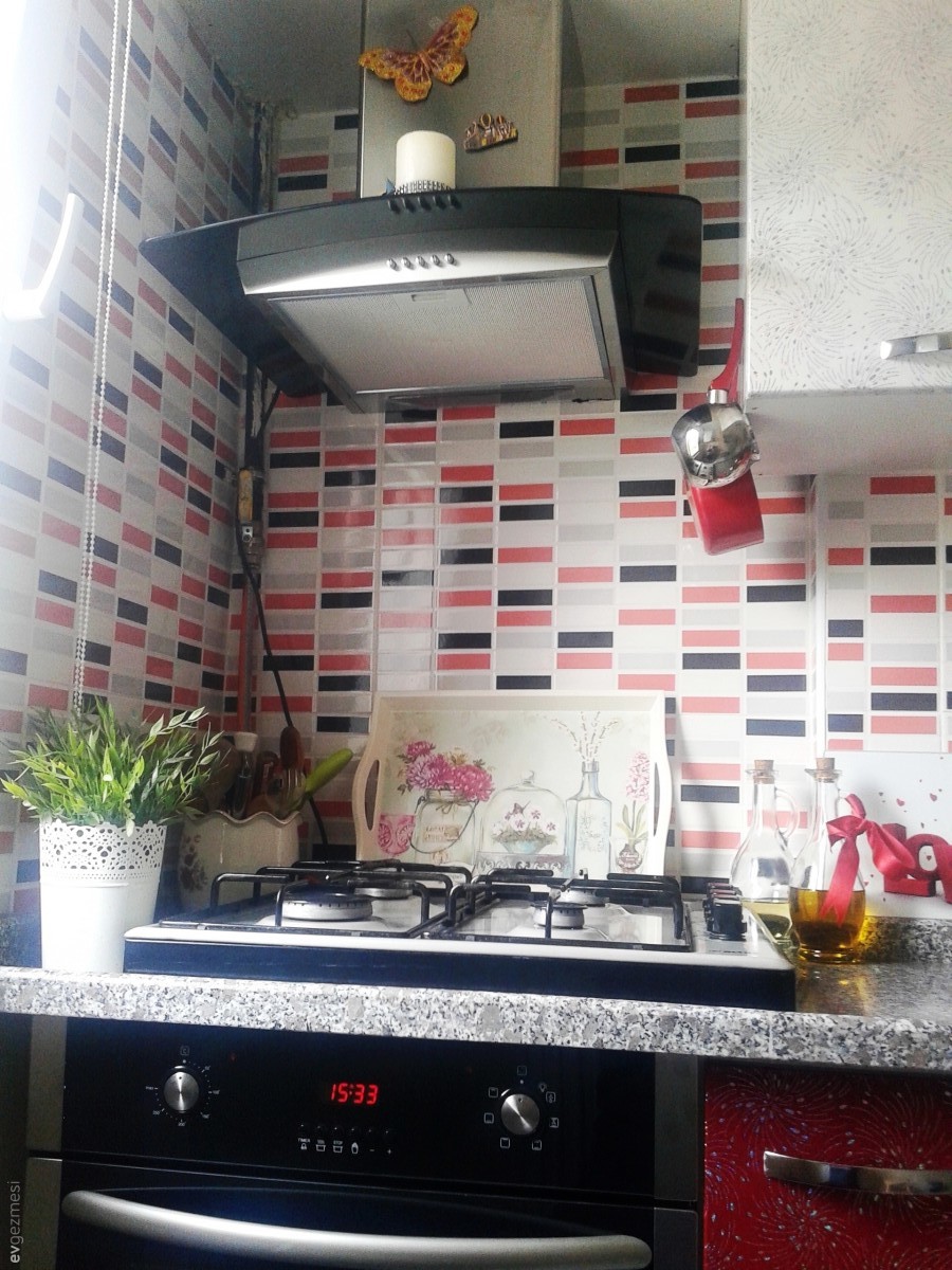 Evi ilk aldığımızda kırmızı/beyaz mutfağı pek beğenmemiştim. Fakat temizlenip de yerleşmeye başladıktan fikrim değişti. Şimdi çok beğeniyorum.