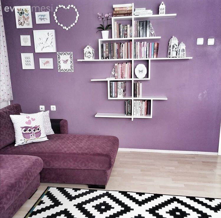 Birbirinden güzel duvar dekorları, geometrik tasarımlı modern objeler ve her odasında çarpıcı mor renk vurgusuyla Leyla hanımın özgün ve tatlı evinin misafiriyiz..