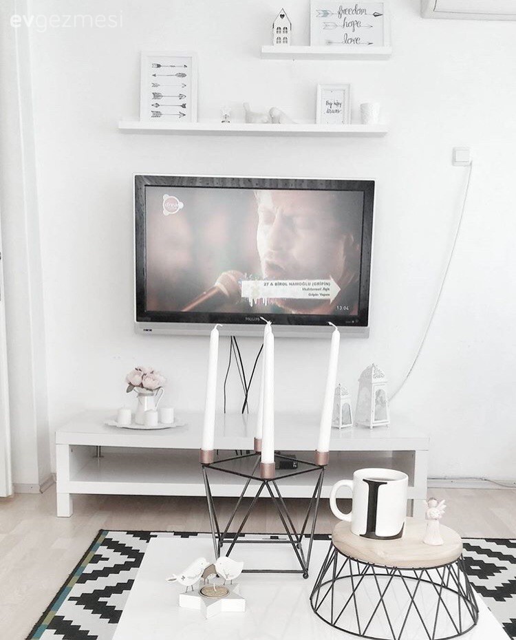 Evinizi beğendim Ünitenin iki yanına isterseniz beyaz ikea raflarından koyarsanız çok daha güzel oluyor ?