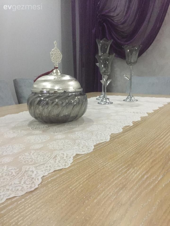 "Merhaba öncelikle paylaşımlarınız için çok teşekkürler. 14 yıllık çeyizlik salonumu değiştirmek için bir çok konuda bana İlham kaynağı oldunuz. Ama hala birkaç öneriye ihtiyacım var gibi; örneğin orta sehpanın üzerine hangi doku ve renkte bir obje ile tamamlamalıyım ? Yan fon için kruvaze model uygulayabileceğimiz fuşya renk aramama rağmen bir türlü renk tonunu tülde bulamadım.Bu yüzden Yastıkların içindeki mor renk vurgusuyla yan fonları mor seçtim fakat bir türlü içime sinmiyor. Bunun içinde bir öneri istiyorum. Çok teşekkür ederim."