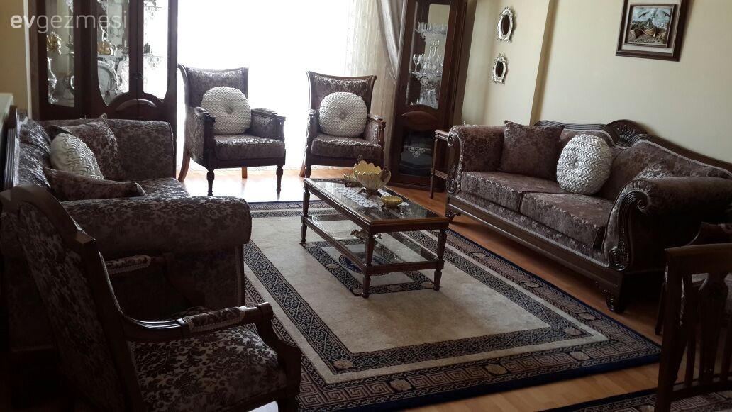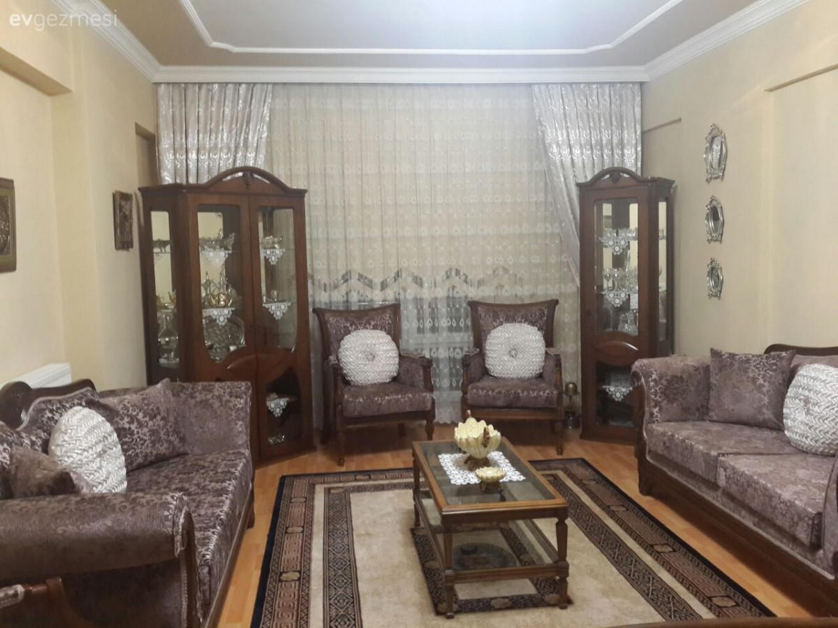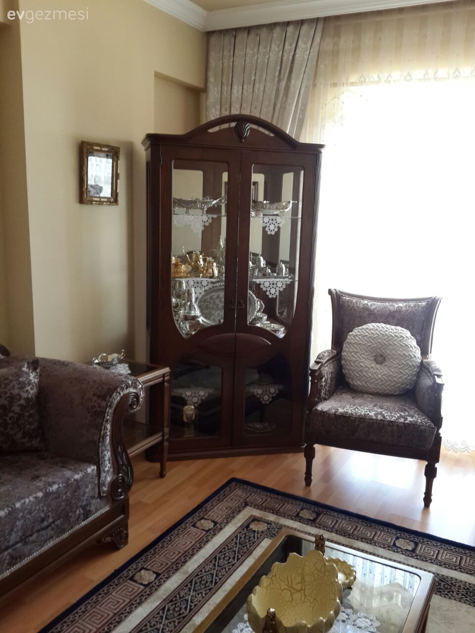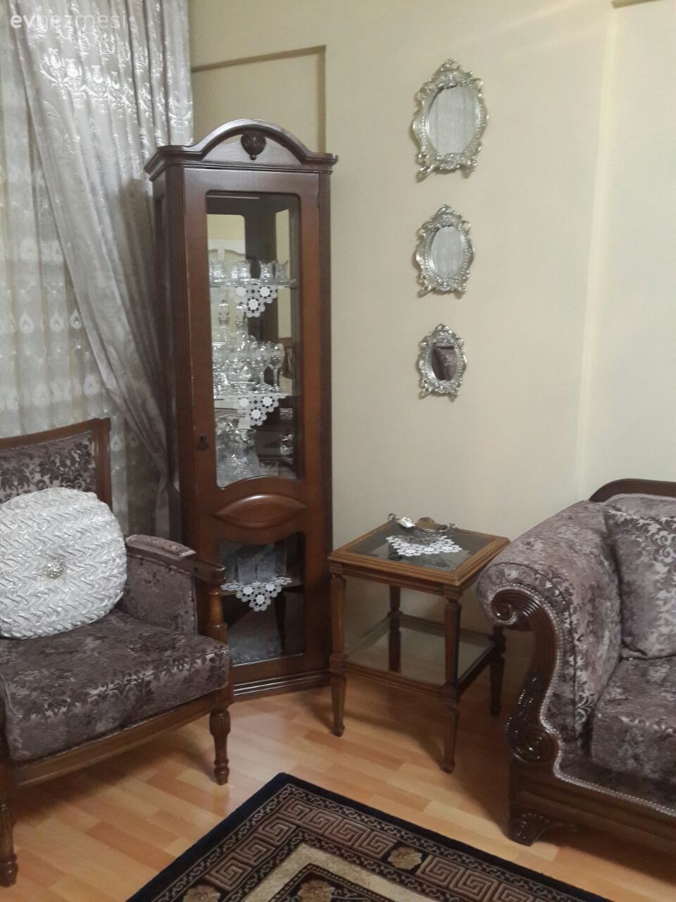 Mutfağım koymak için uygun değil dar olan banyoya olur bu takımın bide iki kapaklı küçük dolabı var eskiden televizyon dolabı olarak geçiyordu oda güzel salon çok geniş olmadığı için onu kaldırdım .salonu yeni böyle yaptım önceden konsol camın karşısındaki büyük vitrin kapının karşısında yani konsolu yerinde küçük Gümüşlük şimdiki büyük Vitrini yerinde koltuklarda aynı yerindedir. Bi ara küçük Vitrini kapının yanındaki duvara koymuştur yani büyük Vitrini karşısına masada konsol ve büyük Vitrini önündeki .
