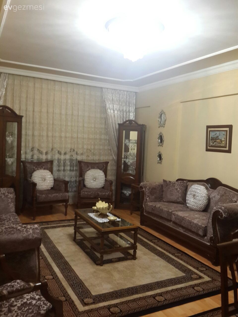 gerçekten çok temiz ve düzenli duruyor.. 16 yıldır aynı tarzı- dokuyu korumak marifet sanırım ;) mobilyaların ahşap kısmının rengini açarsanız ...yani beyaz olması şart değil krem-bej tonlarını kullanarak eskitme tarzı uyguluyorlar güzel oluyor, döşemeler de değişti mi mükemmel olur. bu durumda halılar da iptal tabi sadece oturma grubuna bir halı yeterli. zaten yemek masası altına konan halılar çok gereksiz bana göre, temizliği de zor. aslında vitrinlerin ikisi de güzel ama fon perde bölümünü kapatmış. geniş olan oradan kaldırılsa nasıl olur diye düşündüm ???. eviniz müsaitse vitrinlerin birini evinizin başka yerinde kullanabilirsiniz. mutfakta kullanabilirsiniz. sadece süs değil fonksiyonel de olur. içine kullandığınız ama göze hoş görünen mutfak eşyalarınızı koyabilirsiniz (porselen fincan -demlik gibi) . dar vitrini banyoya koyanları bile gördüm. içine şampuan, sabun, havlu ,dekoratif objeler koyuyorlar . iyi günlerde oturun :)