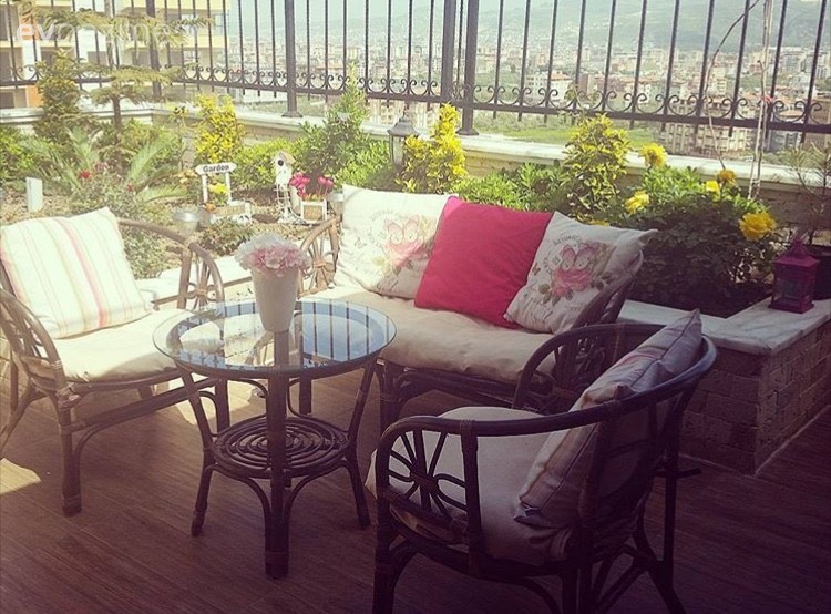 Balkona yere çim halı döşenebilir salıncak konulabilir masa yerine bambu oturma grubu konulabilir