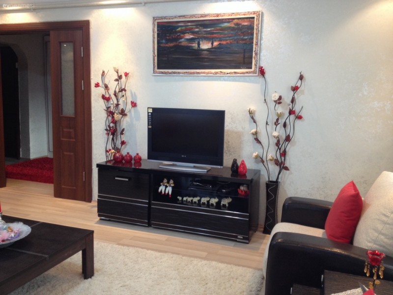 Büyük vitrini kaldırın yerine konsolu koyun karşıki duvara da duvar kağıdı yapabilirsinz
