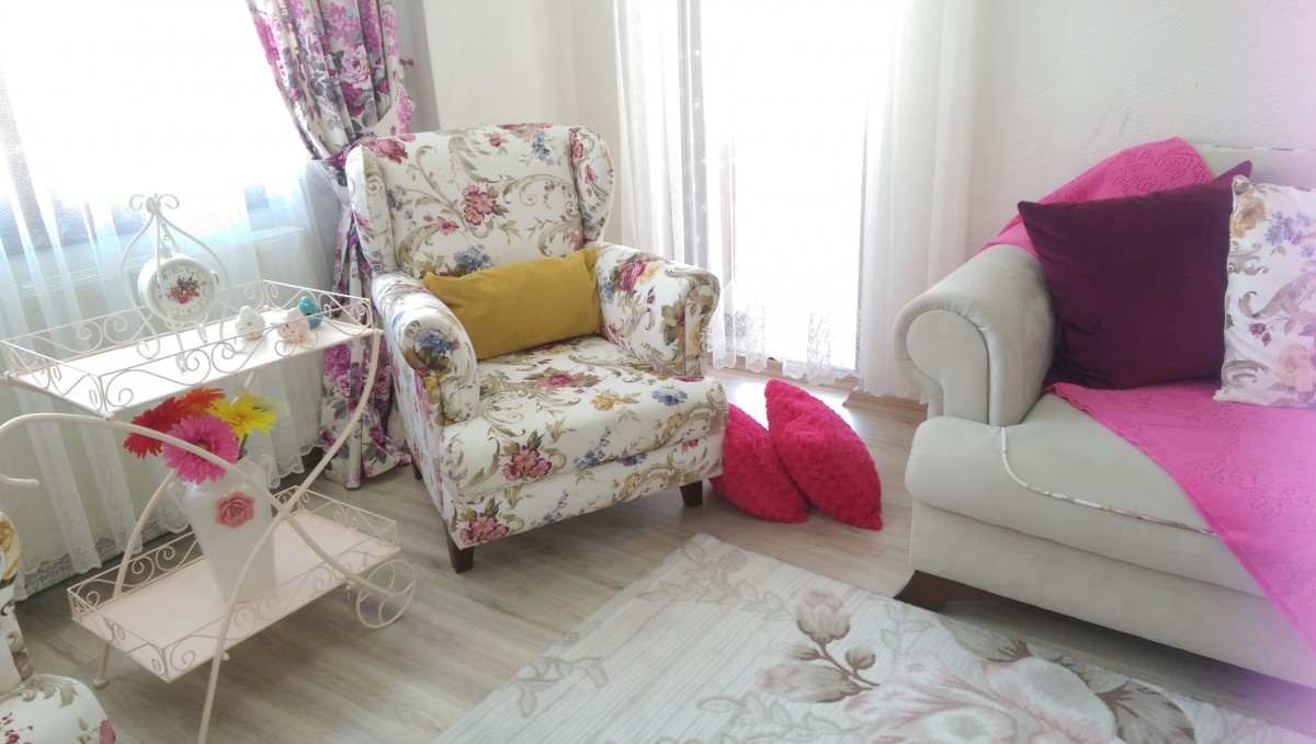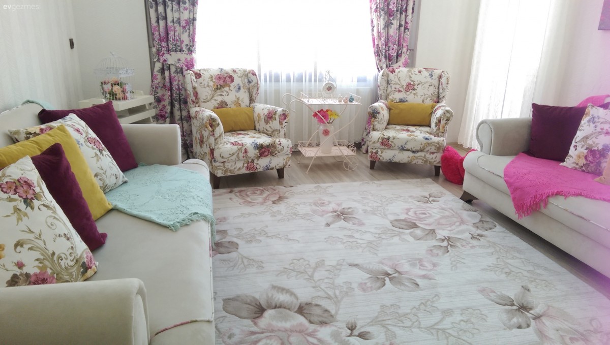 arkadaşlara katılıyorum. yastıklar, berjerler, fon, halı herşey çiçekli. malesef çiçekçi gibi olmuş odanız:((