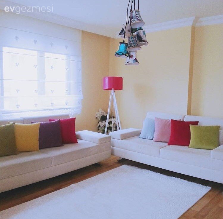 Yeni masraf yapmissiniz zaten..gerek yok tekrar degistirmeyd..Bence cokta kötü degil.. ama az biraz imkan varsa fusya olan kirlentleri soft bi renk kullanmak daha hos olur... yada haliniz acik renkte olabilir?!