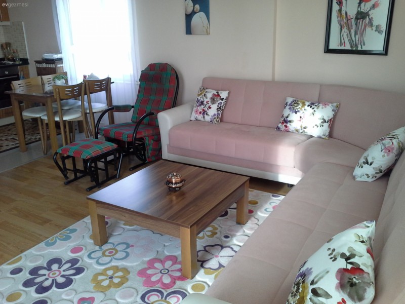 halılarınız kötü değil değiştirmeyin bence. sadece 1 tanesini dikey olarak kullanabilirsiniz. . diğer halıyı da masanın altına koyabilirsiniz. tekli koltuğu da hafif yan koyarsanız sanırım daha şık duracaktır. mutfak ve salon bir arada olduğu için çok ağır bi avize almanızı tavsiye etmem. kumaş kaplı yuvarlak avizeler var. kırlent ve perdelerinizin pembesinden öyle bi avize alabilirsiniz bence. benim evimde sizinki gibi mutfakla oturma odam birarada. bende koltuklarımı kaplatın onun renginde avize almayı düşünüyorum.