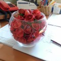Ben kirtasiyeden aldigim evayla gül yapip fanusun icine doldurmustum.yapimi da cok kolay