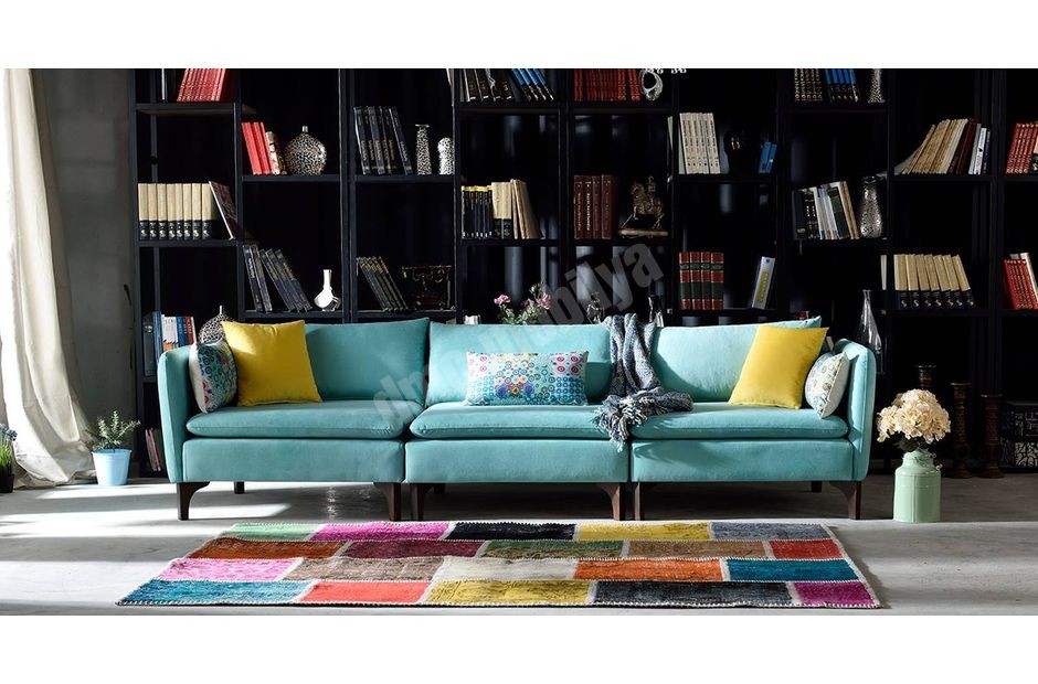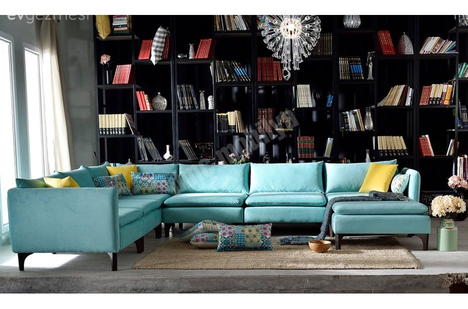 köşe koltuğunu diğer köşeye alır,masayıda çocuğun olduğu taraftaki boşluğa alırsanız,yerdeki halıyı kaldırım turkuaz ve krem tonlu patcwork bir halı yayıp,turkuaz ve krem ve beyaz kırlentler koyarsanız bir anada salonun havası değişir,tabii perdeler de olmamış,tül değil stor perde olmalı düz krem yanınada fon perde olmalı koyu kahverengi olabilir mesela,umarım dilediğiniz gibi olsun