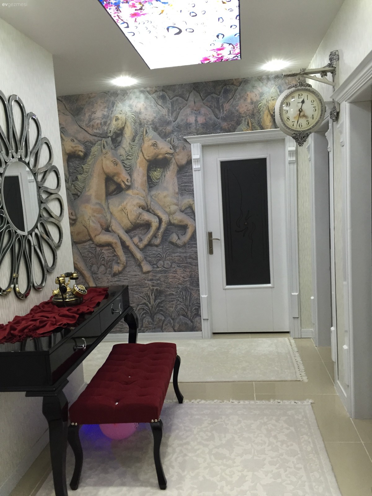 Hollunuz cok guzel bayildim.duvardaki saat,tavandaki aydinlatmalar.dresuariniz hepsi muthis.salonunuz da guzel.ama bana boguk geldi biraz ya resmi kotu cekmiwsiniz.ya da duvar kagidimi koyu olmus.ya ewyalarmi tikiw tikiw oldugu icinmi oyle geldi bilemedim.halinizi duz yaparsaniz deswnsiz belki biraz aydinlanir.ama salon mobilyalariniz guzel.yatak odanizi sevemedim.cok karmawik.gule gule oturun insallah