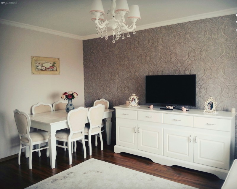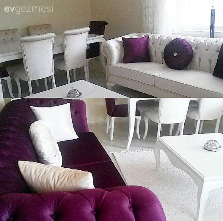 Zeynep hanım yenilediği evinin dekorunda şıklığı ve uyumu öne alırken, mor ve beyaz uyumuyla sofistike ve ferah bir görünüm yakalamış.