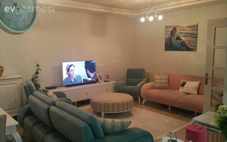 Fatma hanım modern stil evinde sıcak renklerle tatlı ve keyifli bir dekor elde etmiş.