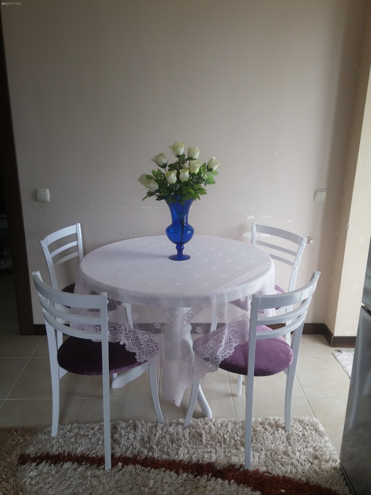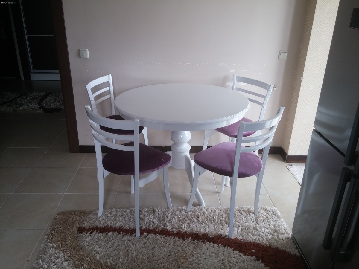 Pazara giderken eskicide gördüğüm masaya esasen ayaklarina vuruldum. Eşantiyon olarak da sandalyelerini aldim. Toplam 100 tl odedim. Tanidik bir mobilyacida da tamirati, zimparasi, lake boyasi ve kumas kaplamasını yaptirdim. Sonuc olarak 350 tl ye boyle guzel bir sonuc çıktı. Yenilerinin fiyati malum ;)