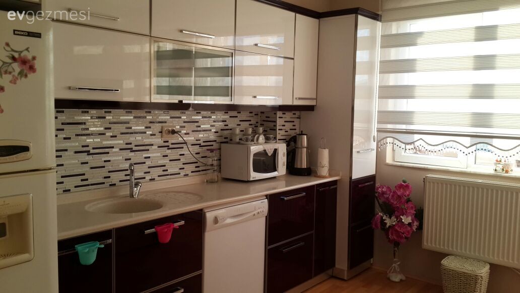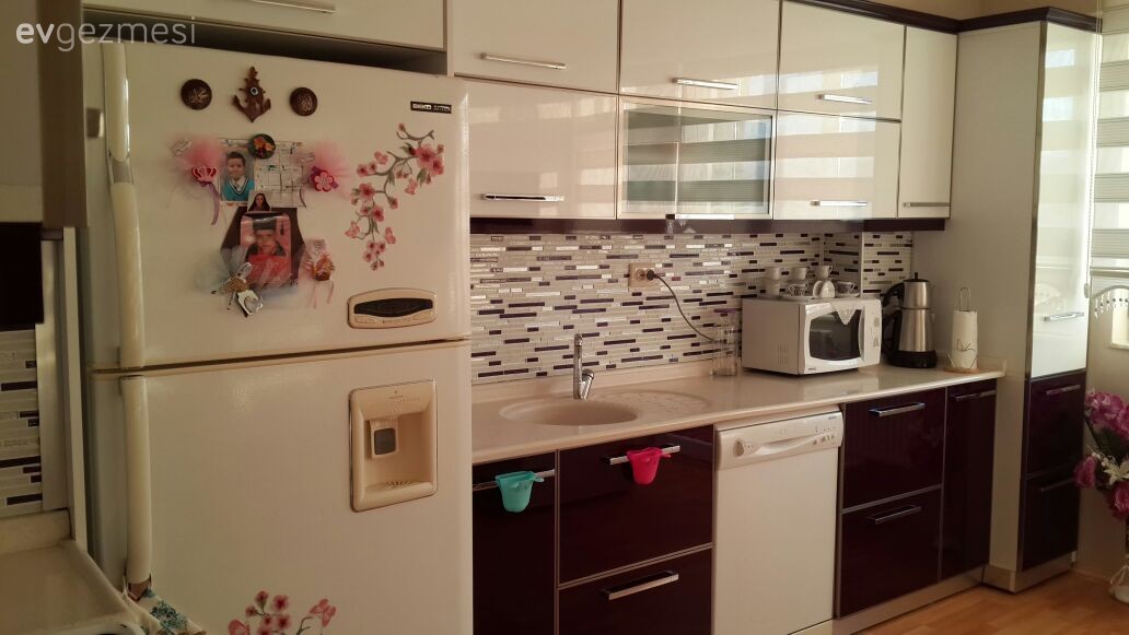 Çok güzel olmuş gerçekten ilginiz içşn çok teşekkür ederim ,bende cam gibi parlak oksun demiştim ustamız o Zaman akrilik kapak dedi şu an yapım aşamasında ,altını sizin gibi mürdüm üstü beyaz oksun istedim ama ustamız mutfağımız çok küçük olduğundan karanlık yapacağını söylemişti,komple beyaz olsun içimde kalmasın die bari taçları mürdüm olsun dedim tmm dediler,ben ara fayanslarımı da değiştirmek istiyorum ama eşimi bu konuda fazla masraf olacağı içşn ikna edemedim :(( bakkalım artık bekliyoruz Nasıl olacağını çok merak ediyorum inşallh tezgah aramın taşların demode olduğu sırıtmaz