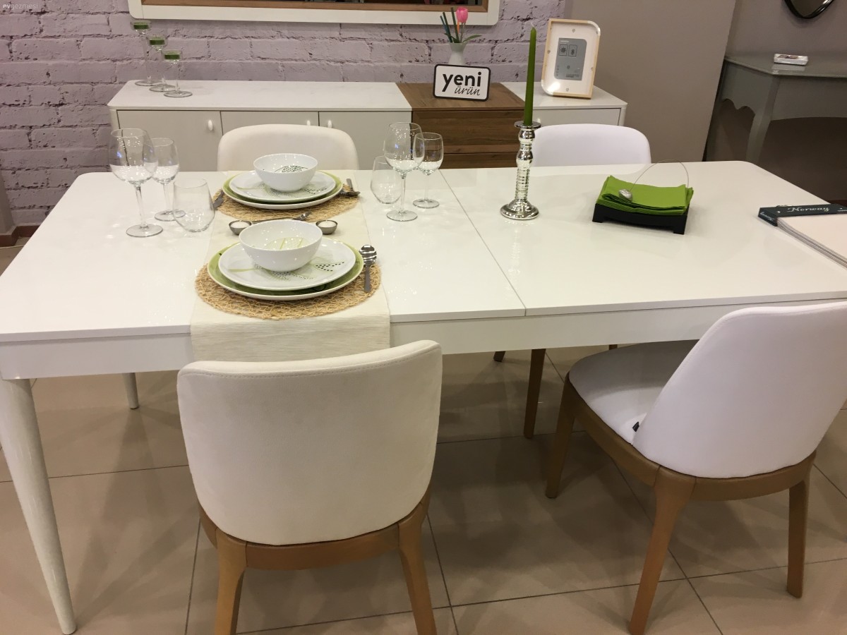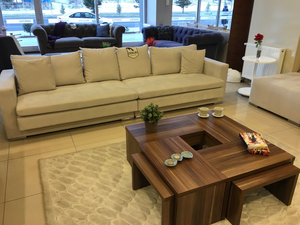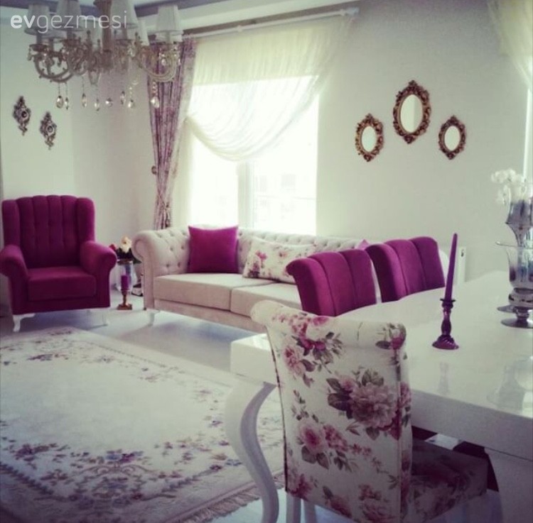 Geniş kırlent li olan koltuğun rengini daha açık tonlarda seçmenizi tavsiye ederim. Konsol ve masa çok güzel. Pembe olan koltuklar biraz basit görünüyor. Naçizane fikrim.