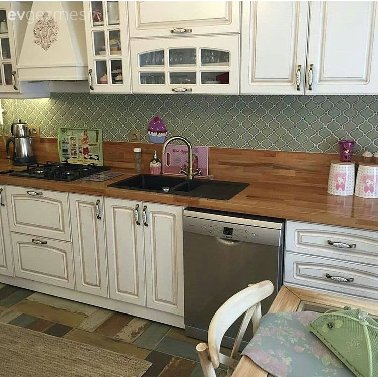 Salonda mor ve beyaz klasik mobilyalar, şık perde ve aksesuarlarla tamamlanmış. Ümitnur hanımın zaman geçirmekten büyük keyif aldığı mutfak ise cıvıl cıvıl renklerde.. Buyrun konuk olalım..