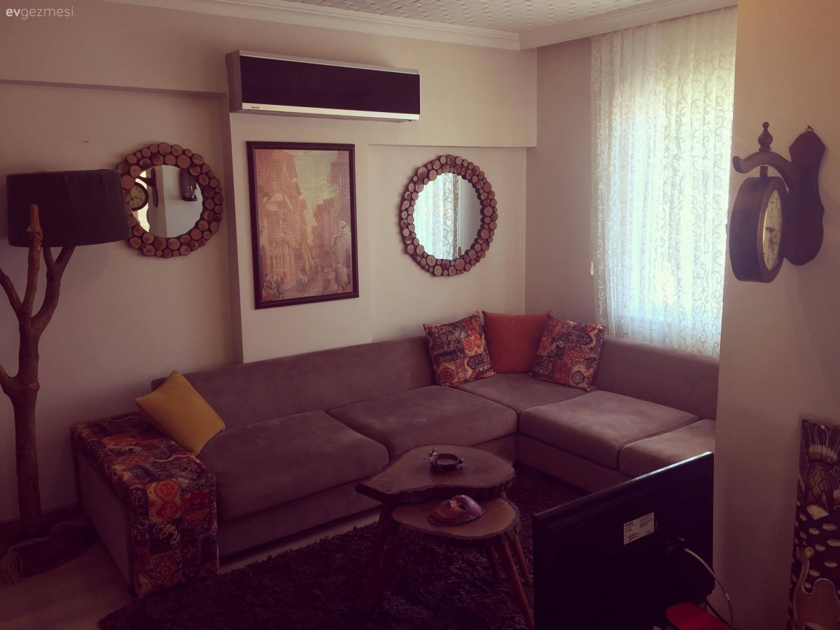 Eviniz çok şık.Fakat cam önündeki koltukla,iki berjer yer değiştirirse salon daha büyük gözükür.Ben her sekli denedim....