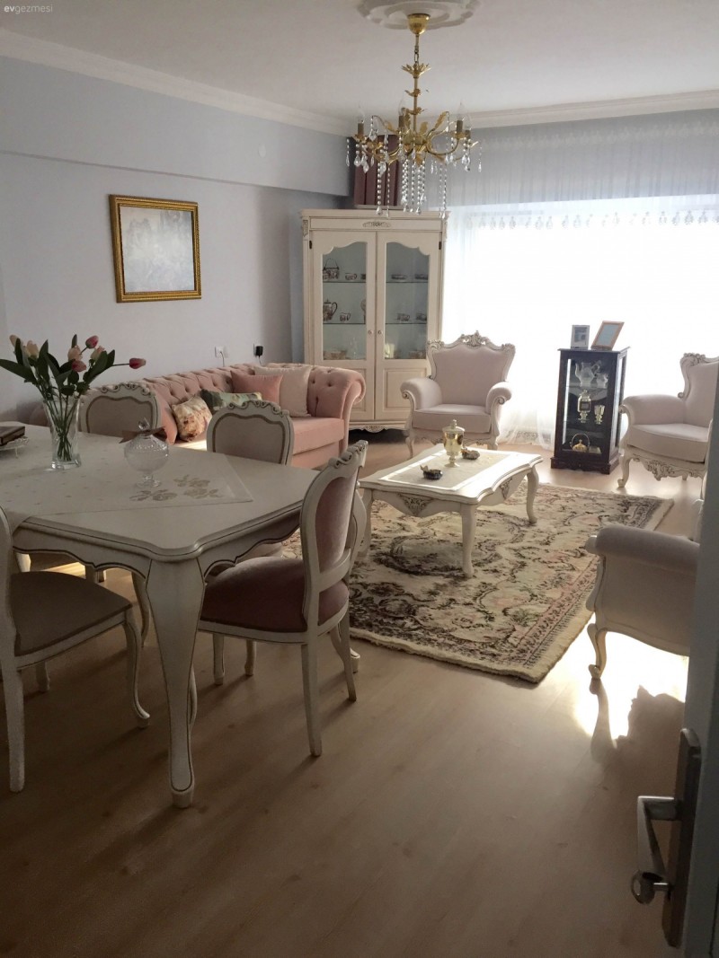 Karyola ve dolaplarını Ikea'dan tercih eden genç ev sahibimiz Hatice hanımın yatak odası dekoru, makyaj masa aynasını süslediği yapma sarmaşıkları, mint yeşil ve pembe ağırlıklı, zarif desenlere sahip yatak örtüleri ve çiçek desenli objeleriyle bahar gibi bir görünüme bürünmüş.