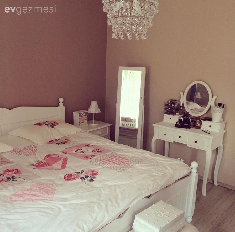 Açık renk mobilyaların kahverengi duvar ile daha da öne çıktığı evinin sıcak ve zarif bir havası var. Buyrun konuk olalım..