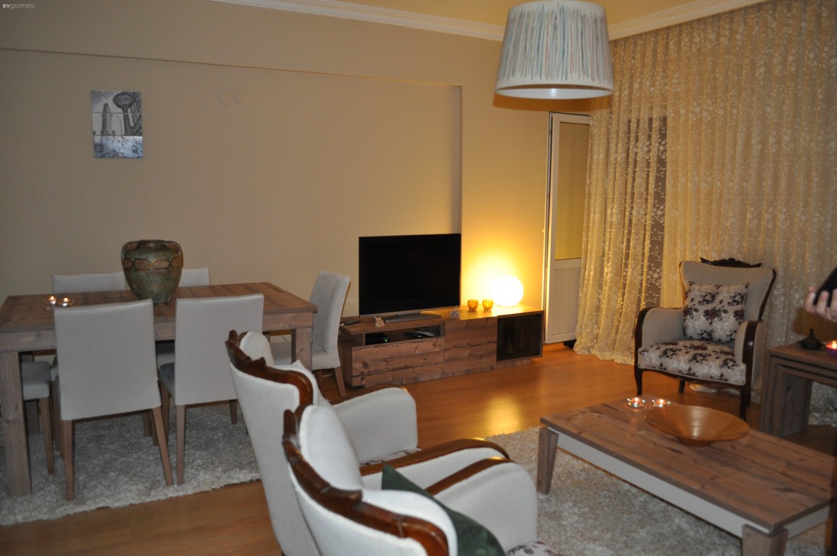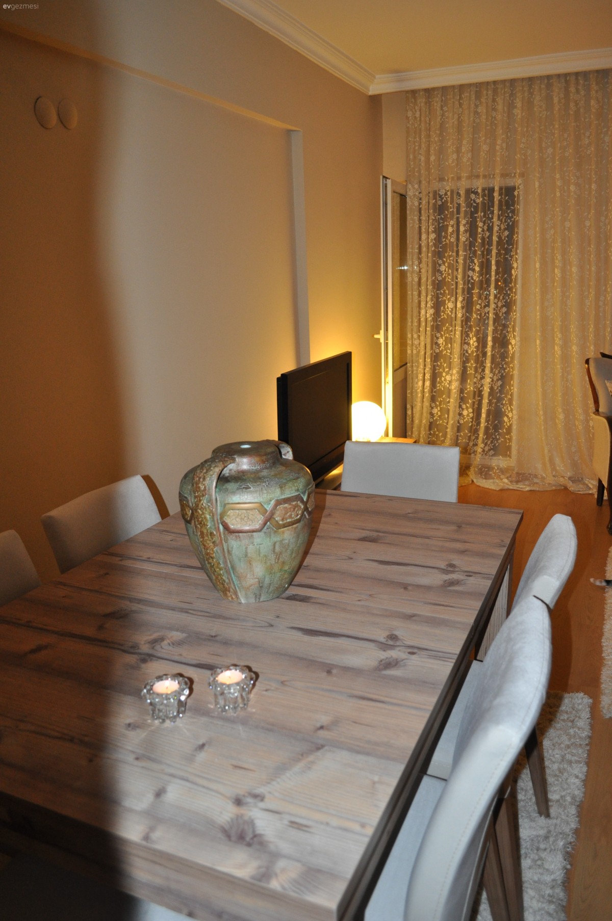 Öncelikle güzel bir eviniz var güle güle oturun. Benim gözüme takılan tek nokta duvar saatiniz ve tablonuz. Saatiniz daha büyük olabilirdi tablo da aynı şekilde bir de çok yukarı asmissiniz. Bir tek onlar gözüme çarptı.