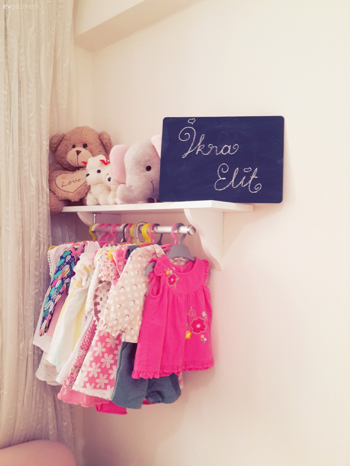 odamız küçük olduğu için şimdilik kıyafetlerini bu şekilde kullanıyoruz şifonyer ile yeterli oluyor