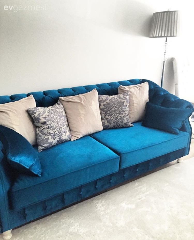 Salonda mavilere, gümüş, gri ve beyazlar şık bir hava katarken, oturma odasında mavi detaylar beyazlara dingin bir görünüm katıyor. Oturma odasında favorimiz etamin duvar dekorları Lütuf hanımın elinden çıkma. Buyrun konuk olalım..