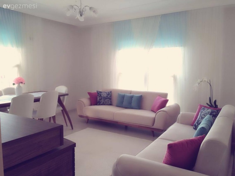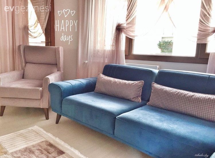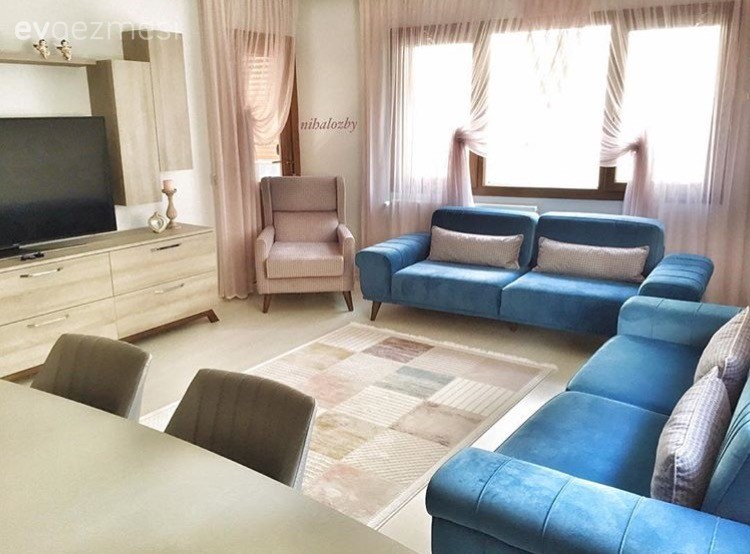 Mobilyalar Enza Home, halı Sanat Halı, orta sehpa ise İzmir Karabağlar'da özel yaptırılmış.