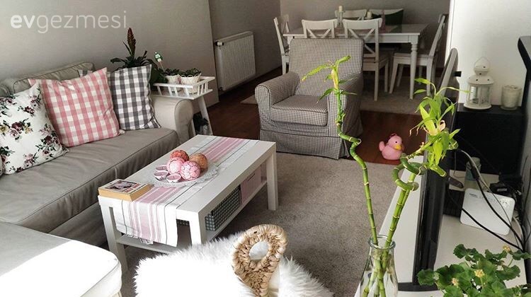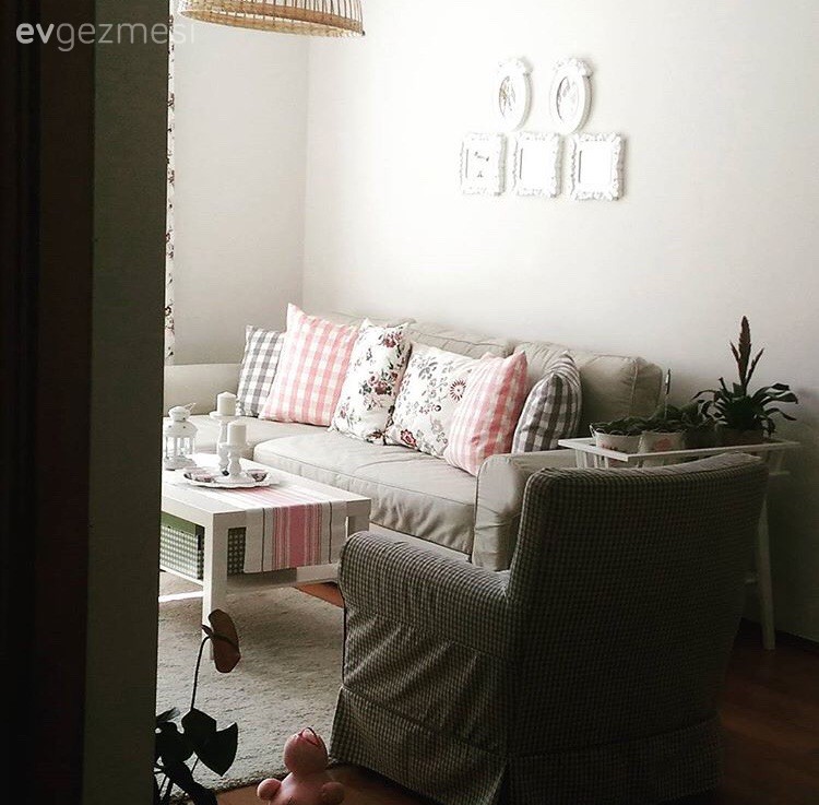 Ikea'nın country stil mobilyalarının tercih edildiği evde, pöti kare desenler, kılıflı, rahat koltuklar ve renkli aksesuarlarla cıvıl cıvıl bir atmosfer yakalanmış. Hadi buyrun konuk olalım.