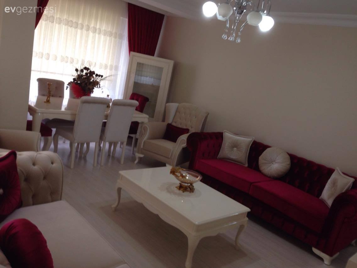 Salonununda sadece iki renk hakim,ve fuşya gerçekten çok göze bator.daha soft bi renk kullanabilirdiniz.üzerinde minik desenleri olan yumuşak bi pembe tonunda halı seçmelisiniz bence.salonunuzda her şey desensiz tek renk çünki.bi hareket olmalı