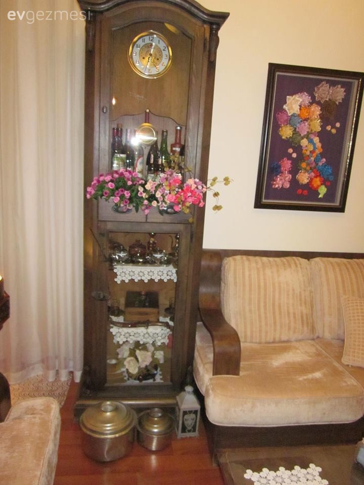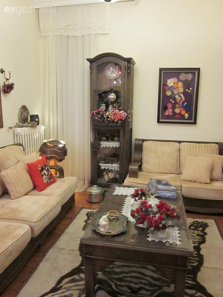 Hülya Hanim öncelikle evinizin resimlerini bizlerle paylasma inceligi gösterdiginiz icin tesekkürler. Vitrinleriniz,dolaplariniz sehpalariniz,saatiniz,masaniz cok güzel. Beyaza boyayip geridönüsüm diye güzelim tarihi eserleri mahvetmediginiz icin extra tesekkür ederim size. Ben cicekleri cok severim, keske ciceklerin hepsi gercek olsaydi daha bir organik görünürdü,hala yasaniyor hissi uyandirirdi odanizda. Battiniyelerinizin cok hos olmasina ragmen Antika bir hali odada cok güzel dururdu tabi bu benim nacizane fikrim. Evinizde huzurlu ve mutlu oturun efendim.