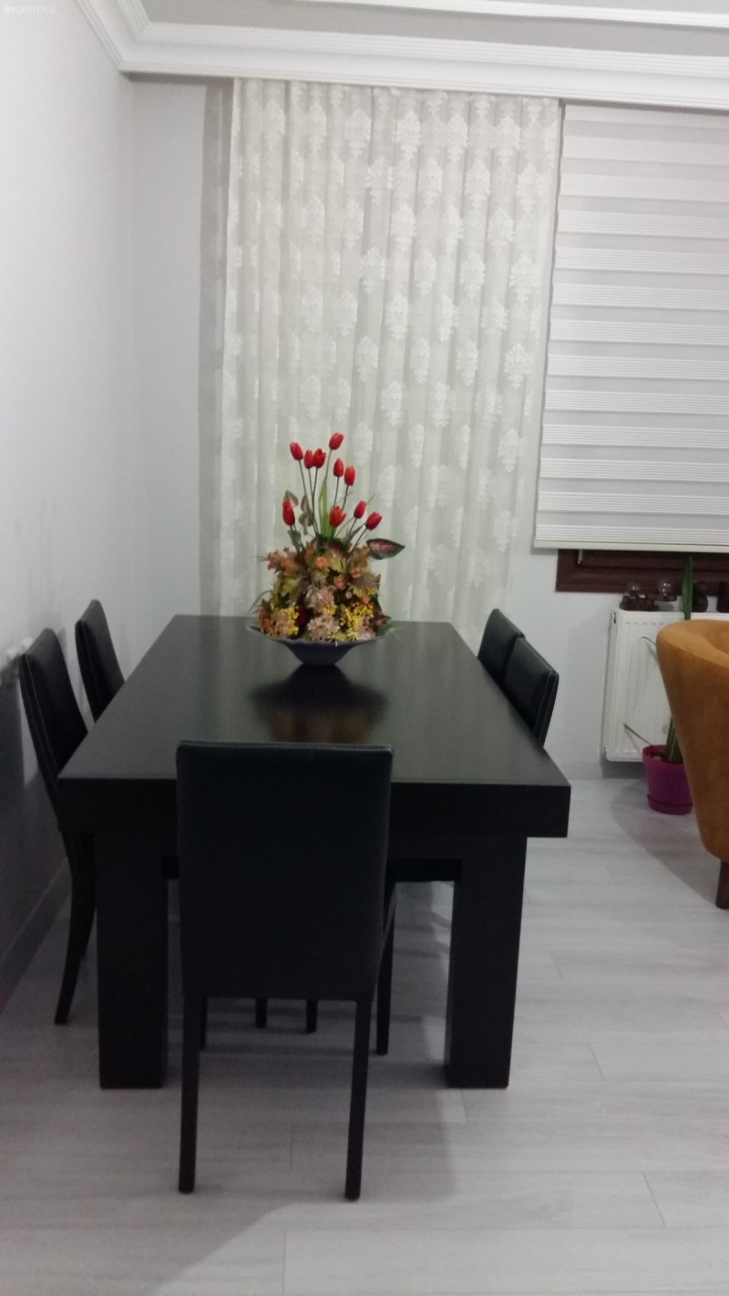 Benim sandalyelerim ve masam da aynı sizinkilerden.ben de uyumlu koltuk arıyordum fikir almış oldum.duvara güzel bir tablo iyi gider bence...güle g<br /> le kullanın..