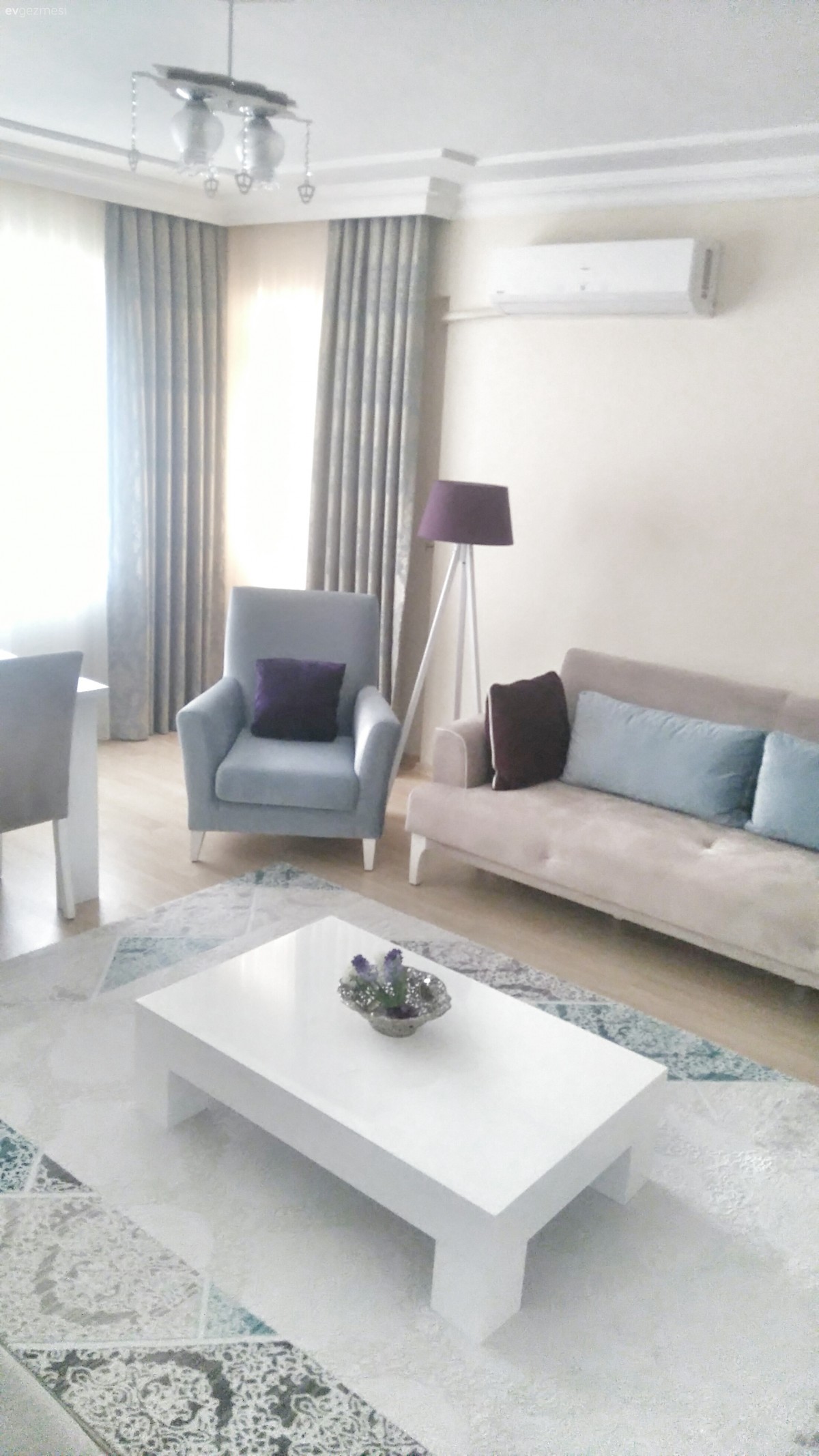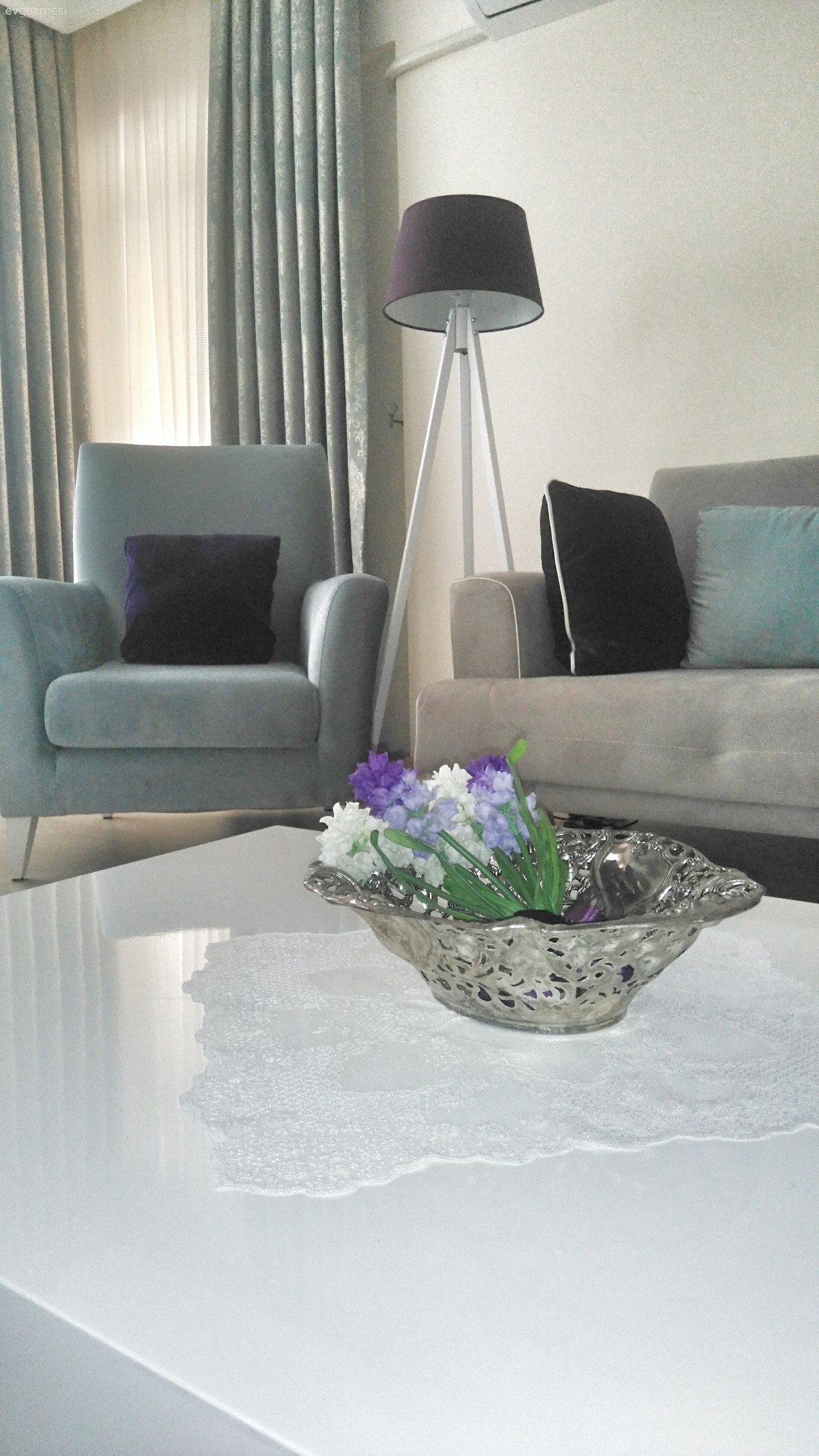 Mor turkuaz ve tabikide gri en çok sevdiğim renkler ve oldukca sade bir salon tercih ettim. Zevkim ne kadar beyenilecek merak ediyorum 1,5 yıllık evliyim ev dekorasyonu sunum Vs şeyler düşkünüyüm boş kaldıkca evimde degişiklik yapmasını seviyor ve mutlu oluyorum sayfanızıda bir o kada severek takip ediyorum